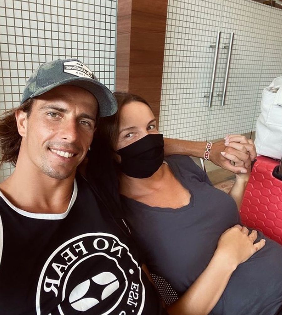 Niestety podczas zawodów uległ wypadkowi. Na fotografii pozuje czule trzymając się za brzuch. Na pierwszym z nich widzimy buzię dziecka a na kolejnych całą rodzinkę w komplecie.
